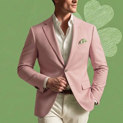 Per uomo Giacca blazer Colletto ad incastro Moda Leggero Classico Tinta unita Blazer Bianco Verde chiaro Rosa Vestibilità aderente Monopetto Due Bottoni