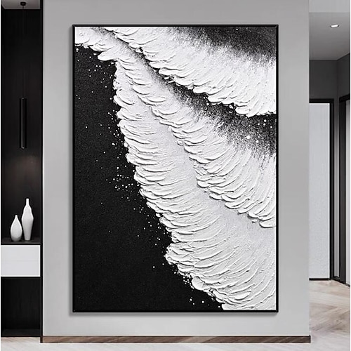 dipinto a mano in bianco e nero pittura astratta della tela di canapa pittura a mano in bianco e nero onda pittura immagini in bianco nero decorazione della parete nero bianco arte astratta opera