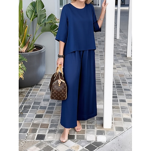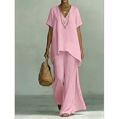Per donna Misto cotone Set di biancheria in cotone Set di Pantaloni Mezza Manica Girocollo Semplice Patchwork Elegante Moda Streetwear Casuale Quotidiano All'aperto Nero Bianco Rosa Estate