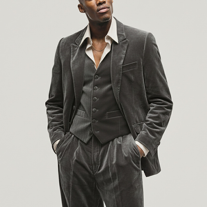Men's BlazerVestDress Pants Blazer Suits Business Cocktail Party Wedding Party 3 Piece Fashion Casual Spring Fall Polyester Plain Pocket Buttons Comfortable Single Breasted Blazer Blue Dark Gray