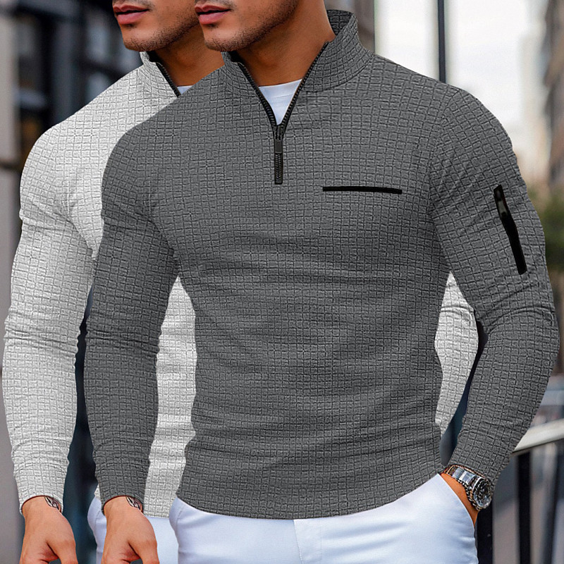 Men's Waffle Polo Shirts Pullover Sports Outdoor Casual Quarter Zip Long Sleeve Fashion Modern Color Block Pocket 2 Piece Spring Fall Cross-Seasons All Seasons Slim Fit 1# 2# 3# 4# 5# 6# Waffle