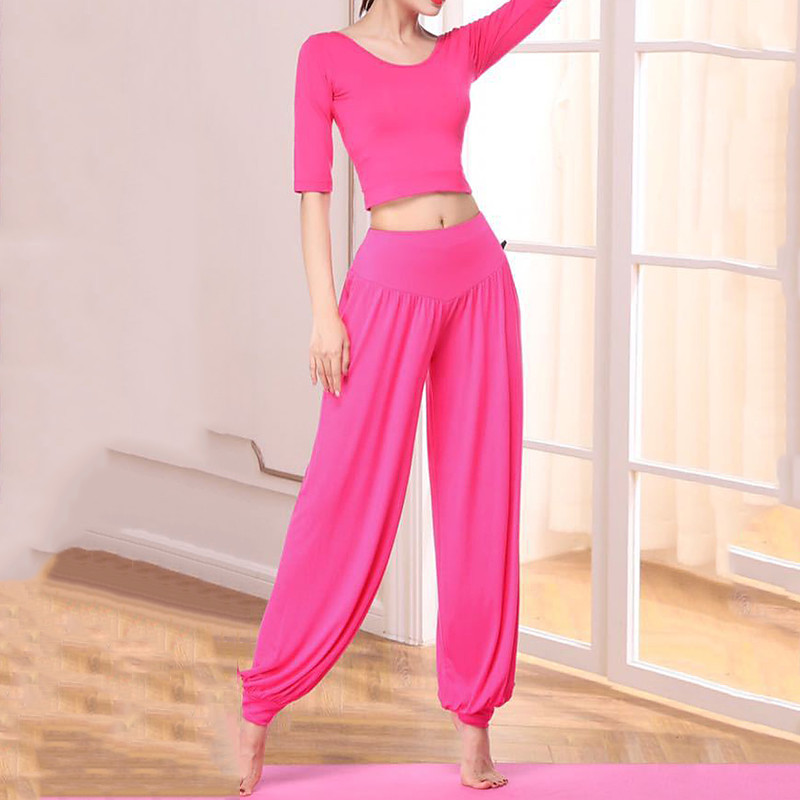 Women's Yoga Suit Lantern Pants 2 Piece Workout Set Solid Color Clothing Suit Fall Black White Modal Dance Pilates Yoga High Waist Lightweight Breathable Half Sleeve Sport Activewear