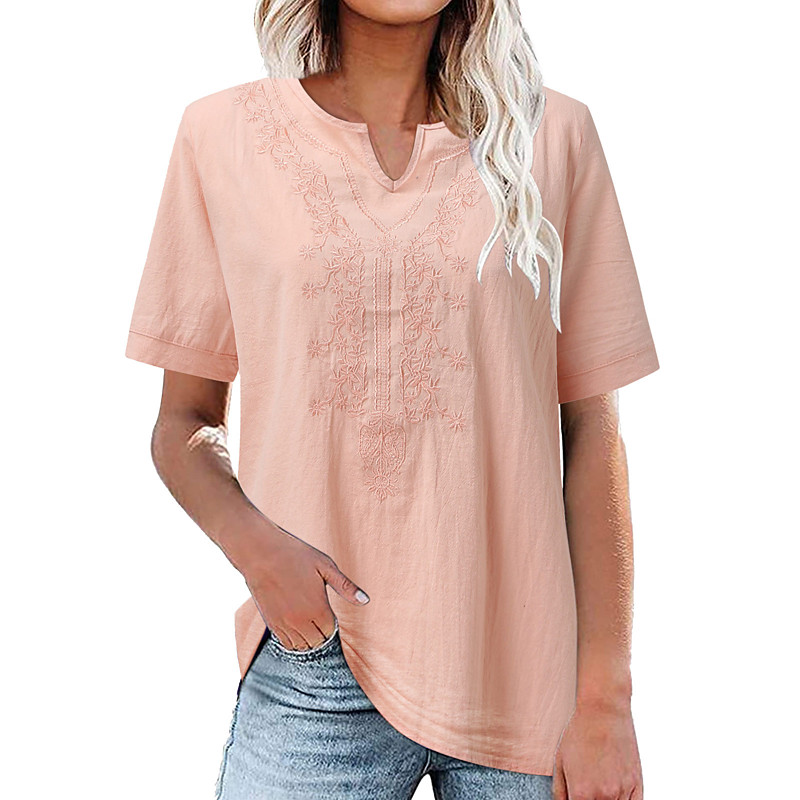 Women's Shirt Blouse Cotton Linen Shirts Plain Fashion V Neck Street Daily Embroidery Black White Pink Summer