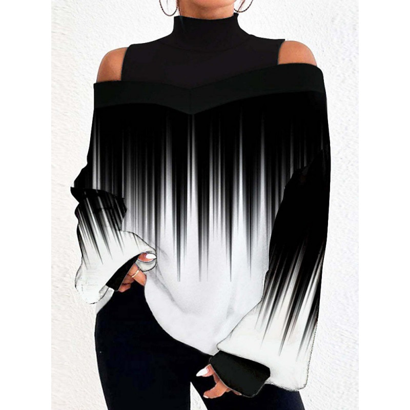 Women's Blouse Geometric Plaid Stylish Casual Long Sleeve High Neck Regular Tops Daily Patchwork Print Black White Khaki Gray Spring Fall Winter