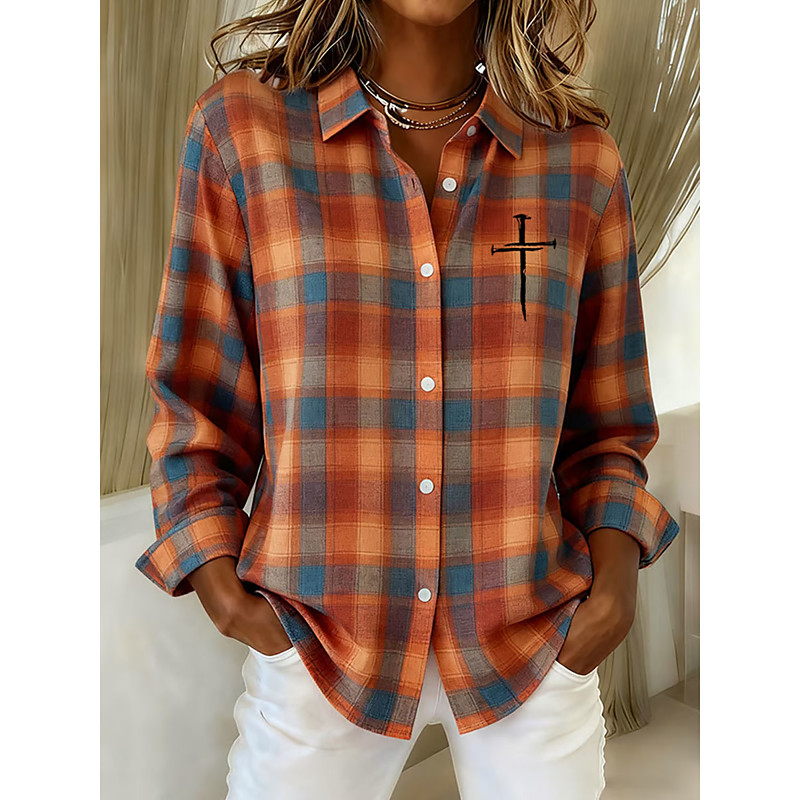 Women's Shirt Button Down Tunic Shirt Collar Long Sleeve Fashion Plaid s Print Regular Tops Casual Rose Gold Red Blue Orange Green Spring Fall