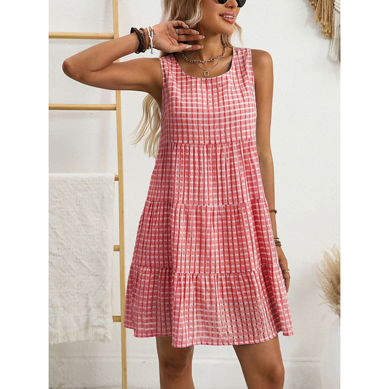 Per donna Mini Abito Abito Estivo Casual Quotidiano Vestibilità comoda Plaid Senza Maniche Girocollo Blu Rosa chiaro Nero Bianco Estate Primavera
