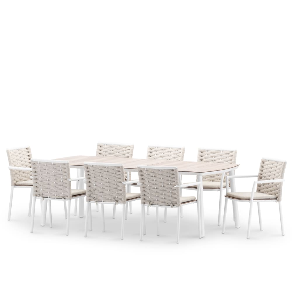 Set da pranzo da giardino bianco e simil legno 8 posti
