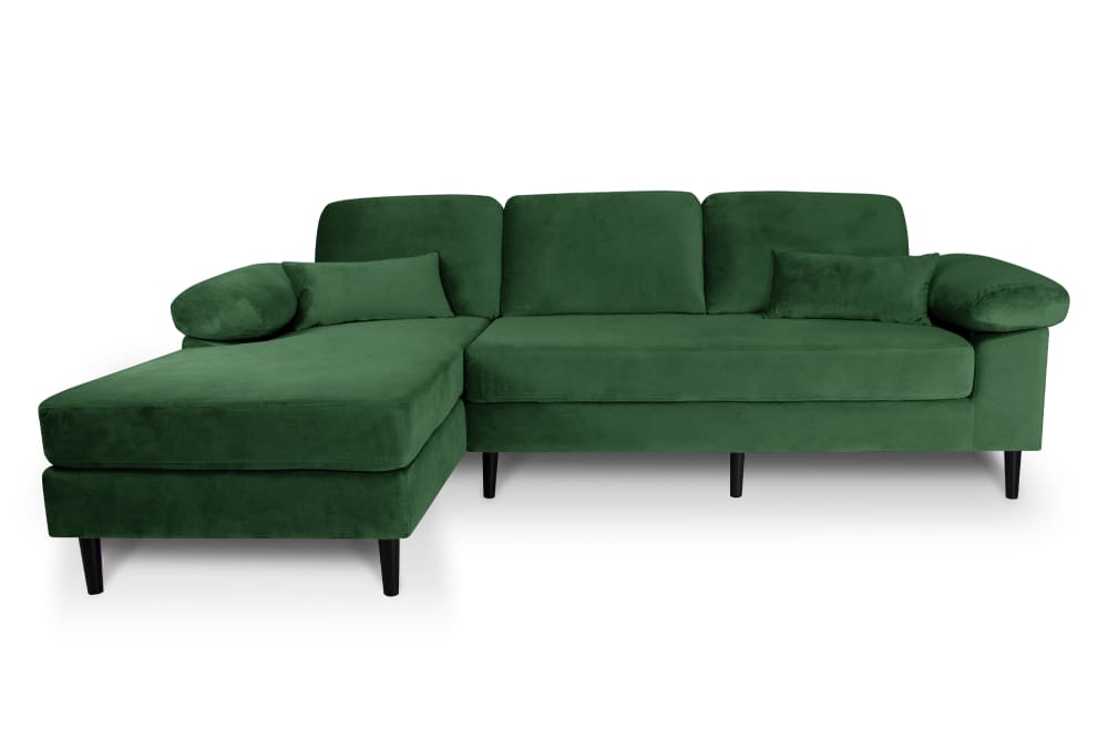Divano angolare 3 posti in velluto verde scuro chaise longue sinistra