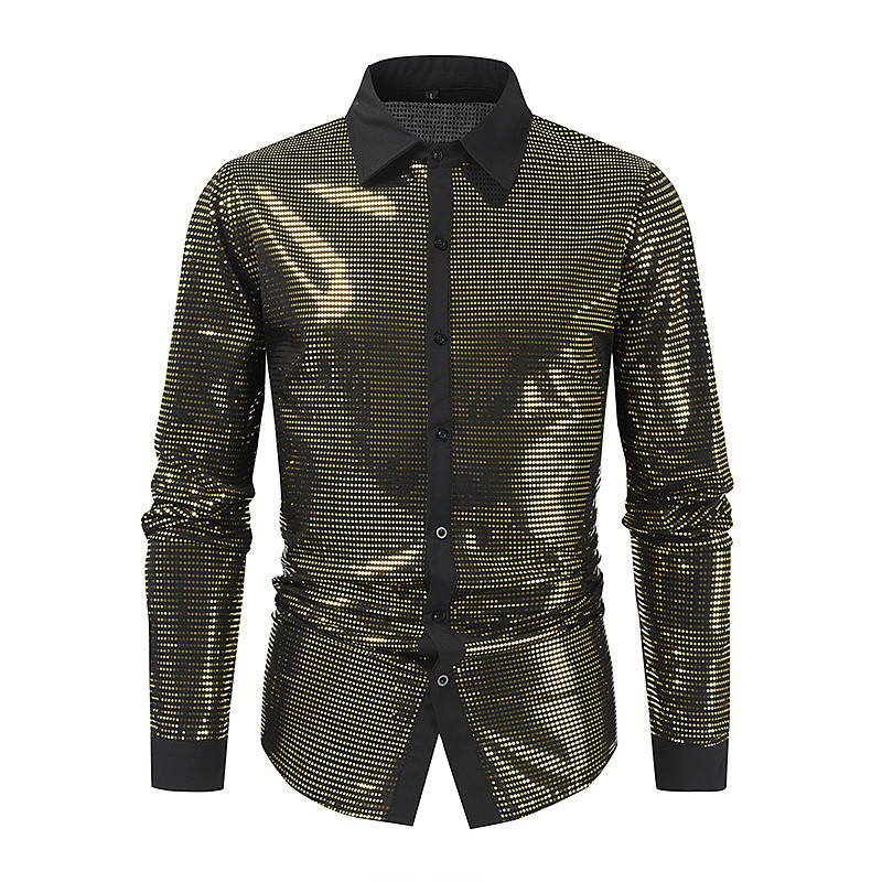 Retro Vintage 1980s Shiny Metallic Shirt Disco Sequins Turndown Fancy Dress Men's Carnival Costume Carnival Performance Club Pride Parade Adults' Shirt All Seasons