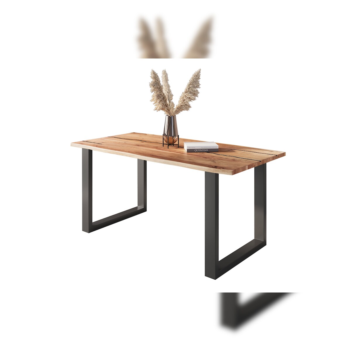 Möbelliebling Baumkantentisch Akazie mit schwarzen Resin-Adern naturfarben 160 x 85 cm U-Gestell schwarz POLLY