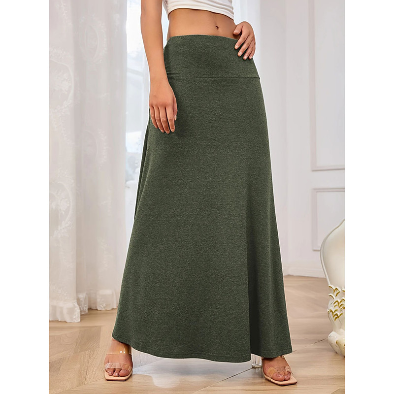 Women's Skirt A Line Fashion Casual Maxi High Waist Skirts Plain Knitting Stretchy Street Daily Wine Sage Green Black Army Green Spring Knit Polyester