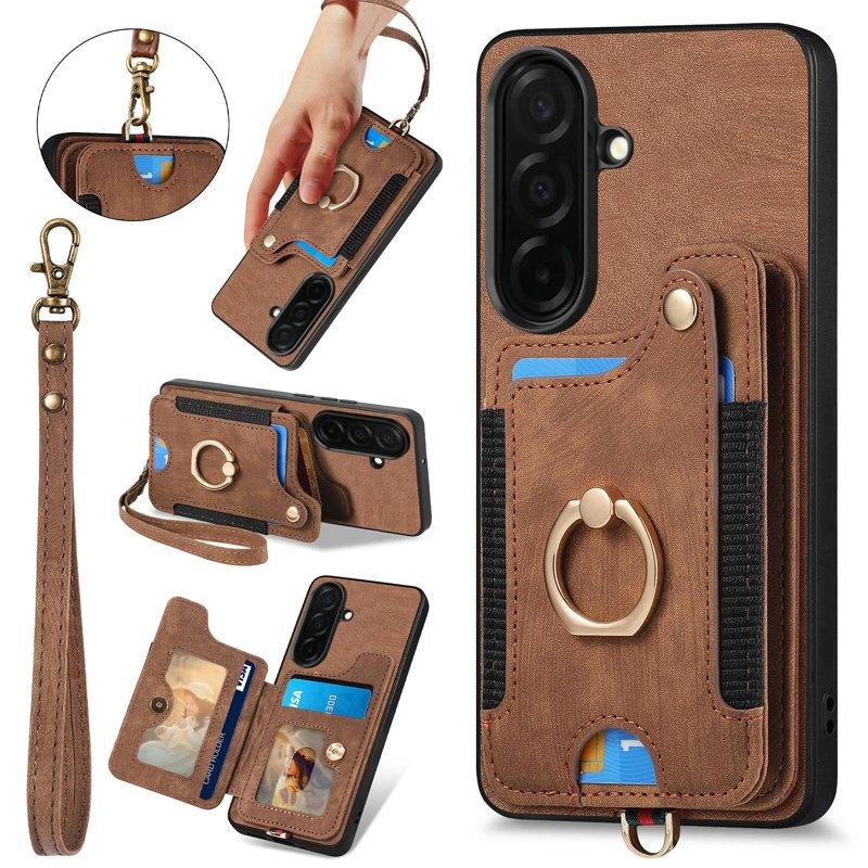 Handy Hülle Handyhüllen Für Samsung Galaxy S26 S26 Plus S26 Ultra Brieftaschenhülle Flip-Cover Mit Handgelenkschlaufe Ständer Retro TPU PU-Leder
