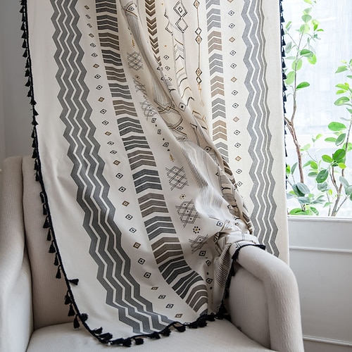 Tende in cotone e lino boho con frange tende geometriche semi oscuranti stampate tende bohemian per finestre della sala da pranzo 1 pannello