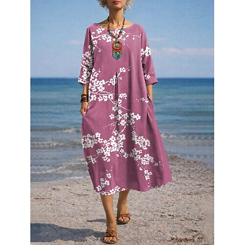 Per donna Abito maxi Abito a trapezio Casual Quotidiano Matrimonio Data Vestibilità comoda Floreale Grafico Manica 3/4 Girocollo Blu Verde chiaro Viola Verde Estate Primavera
