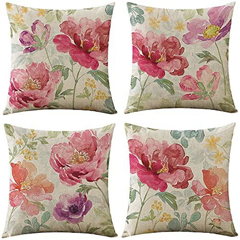 Vintage Floral Double Side Pillow Cover 4PC Soft Decorative Square Cushion Case Pillowcase for Bedroom Livingroom Sofa Couch Chair