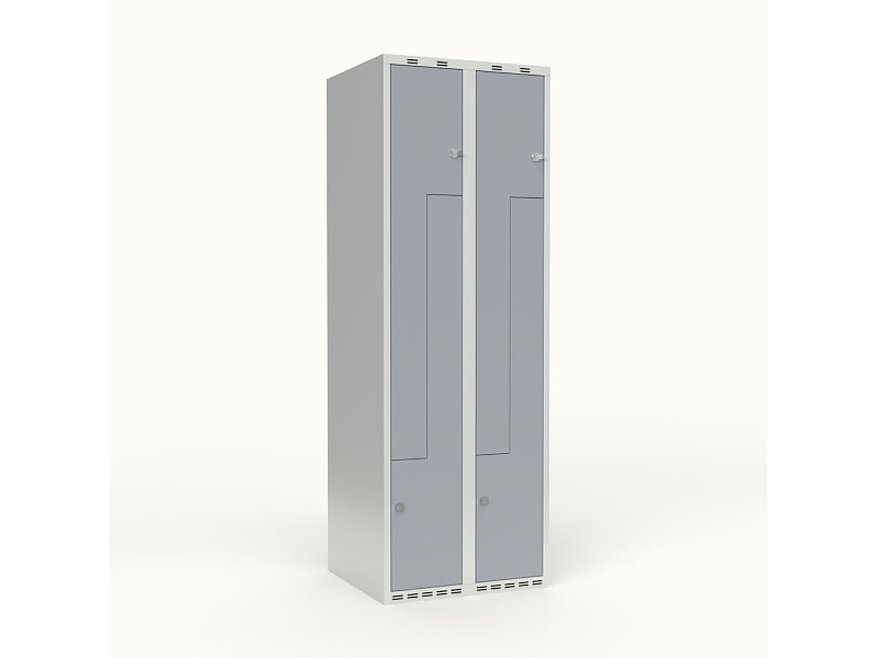 Koulun kaappi 2x300 Suora katto, Z-ovi Vaaleansininen teräsovi Sylinterilukko