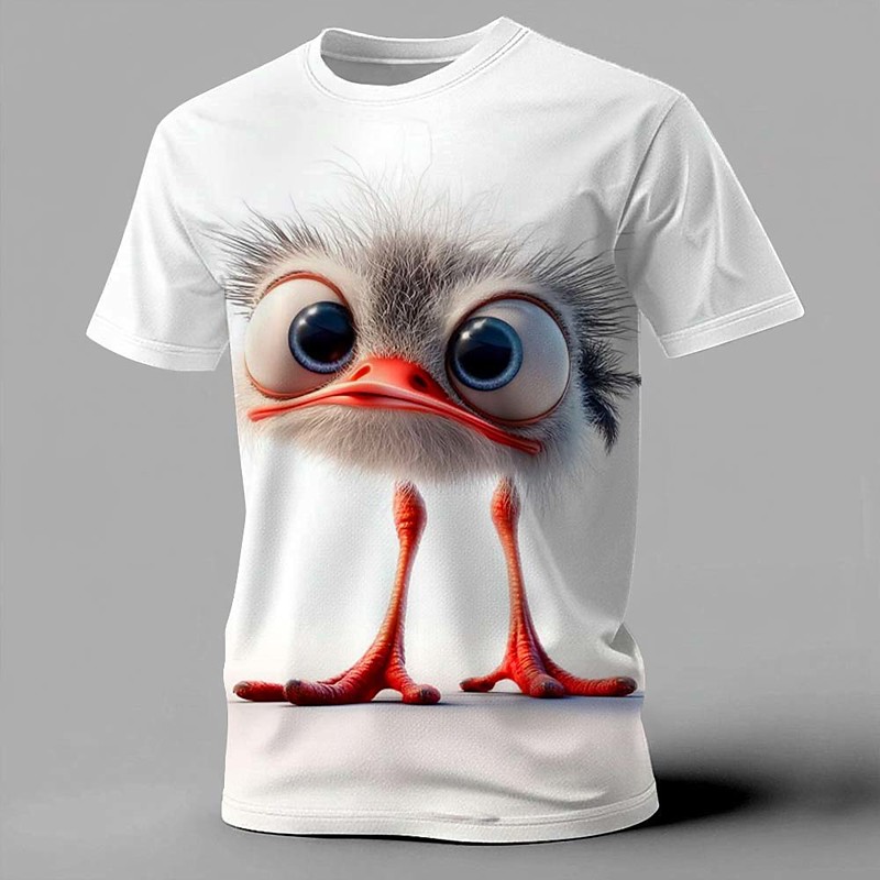 Novelty Fluffy Ostrich With Large Blue Eyes 3D Digital Printed Tee Shirt Casual Summer Animal Graphic Top Clothing Apparel S M L XL XXL XXXL