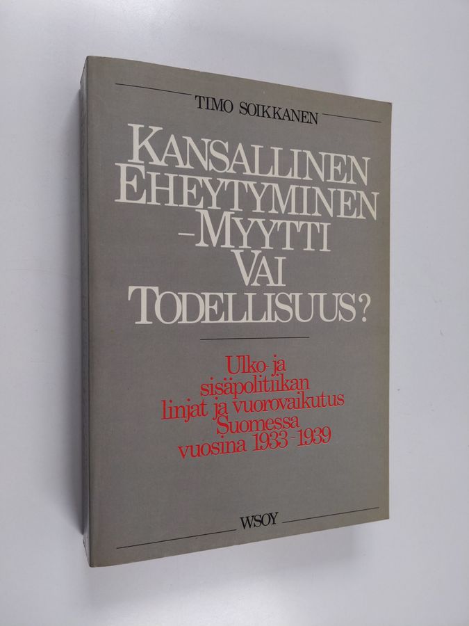 Timo Soikkanen : Kansallinen eheytyminen - myytti vai todellisuus : ulko- ja sisäpolitiikan linjat ja vuorovaiktusvuorovaikutus Suomessa vuosina ...
