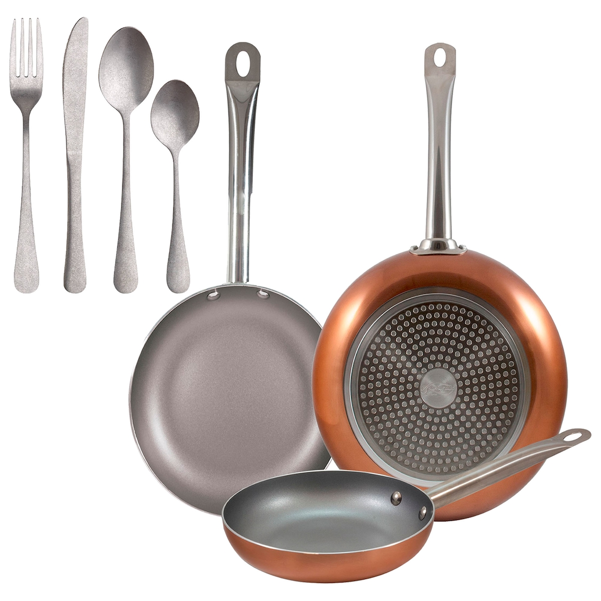 BERGNER - Set aus 3 gepressten Aluminium-Pfannen Ø18/Ø22/Ø26 cm, geeignet für Induktion Optimum Plus 16-teiliges Besteckset aus Edelstahl