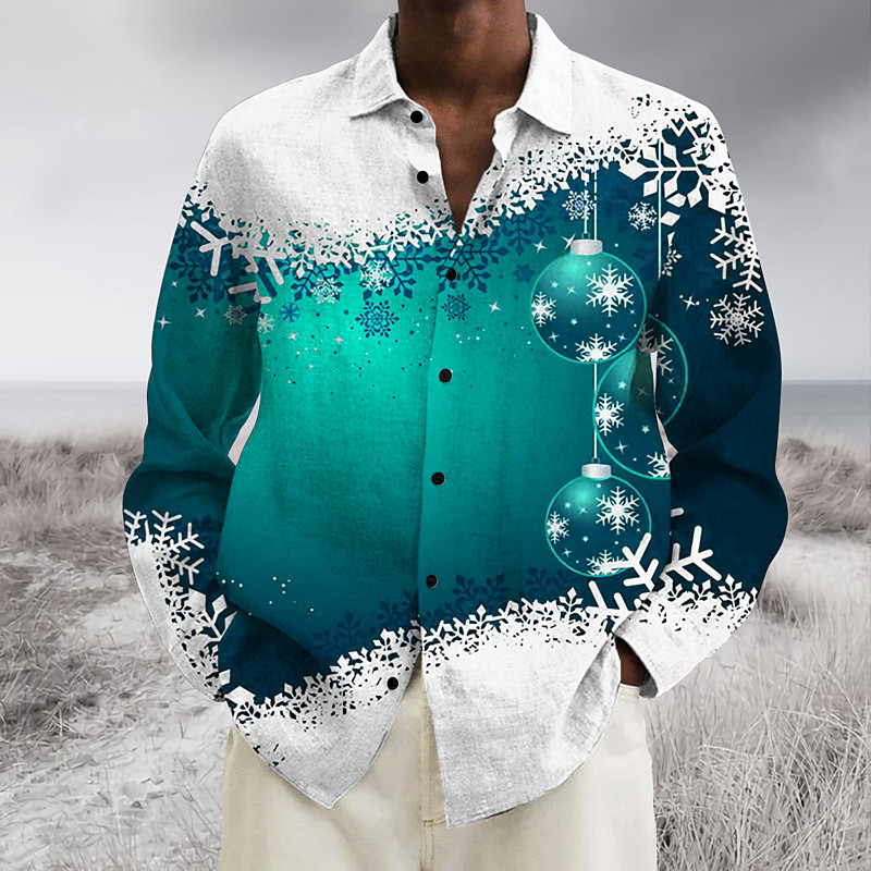 Christmas Men's Christmas Scene Printed Shirts Shirts Graphic Prints Snowflake Turndown Wine Blue Green 3D Print Street Casual Long Sleeve Button-Down Print Clothing Apparel Fashion Designer Casual