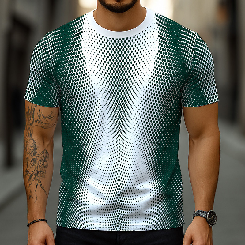 Men's Geometric Optical Illusion 3D T Shirt Short Sleeve T shirt 3D Print Crew Neck Shirt Exaggerated Designer Party Street Casual Red Blue Green Summer Spring All Seasons Clothing Apparel S M L XL