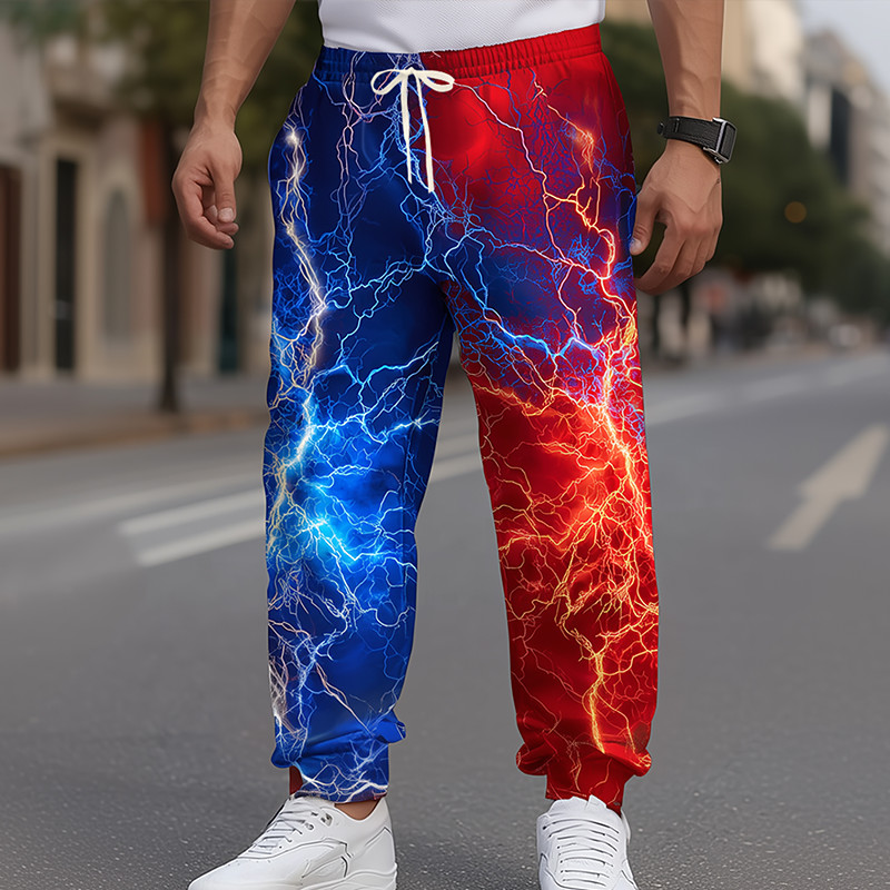 Men's Optical Illusion Lightning Flame Sweatpants Joggers Trousers Mid Waist Drawstring Elastic Waist Casual Jogging Streetwear Workout Athletic Sweatpants with Pockets Spring Fall 3D Print Black Red