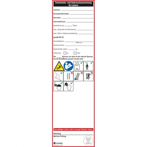 Aufkleber I Leiter-Gebrauchsanweisung Allgemein, Folie, ablösbar, 65x225mm, 2/Bogen, DIN EN 131-3
