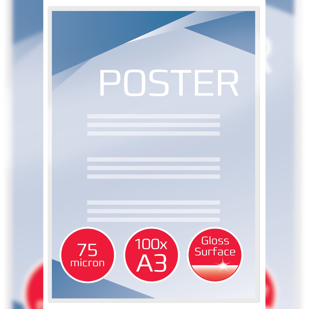 GBC Document Laminierfolien DIN A3 Glänzend 75 Mikron (2 x 75) Transparent 100 Stück