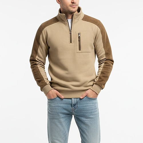 Per uomo Felpa con cappuccio Vino Blu marino Verde Cachi Collo Alto Mezza zip Blocco di colori Tasca Blocco di colore Casuale Quotidiano Vintage Casual Autunno Inverno Abbigliamento Felpe con