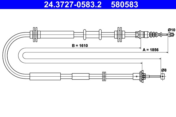 Vaijeri, käsijarru, Takana Ate 24.3727-0583.2 - fiat tipo halvkombi, tipo kombi, tipo sedan - OE 52051221, 52055137