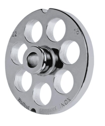 WOLFCUT - Fleischwolfscheibe mit Nabe und 2 Nuten mit 18,0 mm Bohrung kompatibel mit allen gängigen Fleischwolf Marken Größe 22