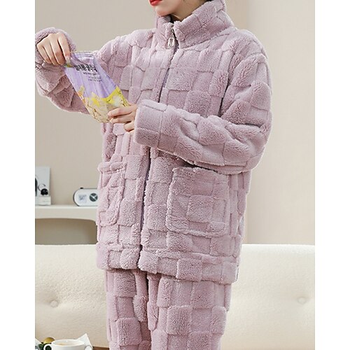 Per donna Pigiama Abbigliamento da Casa Flanella Caldo Moda Felpa con cappuccio indossabile Colore Puro Tasca Elastico in vita Pantalone Vacanza Casa Quotidiano Manica Lunga Collo alla coreana Rosa