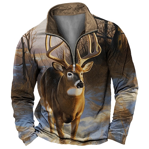 Per uomo MOON Lupo Stampa 3D Felpa Sport Moda Casual Manica Lunga Collo alla coreana Con cerniera All'aperto Casa Feste Lavoro Abbigliamento casual alla moda Blu 1 Blu 2# Autunno Tutte le stagioni