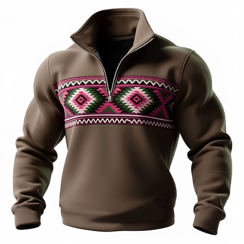 Per uomo Geometrico Plaid Tribale Felpa Moda Casual Vintage Retrò Collo alla coreana Con cerniera Casa Abbigliamento casual alla moda Lavoro Feste Blu Viola Marrone Verde Autunno Tutte le stagioni