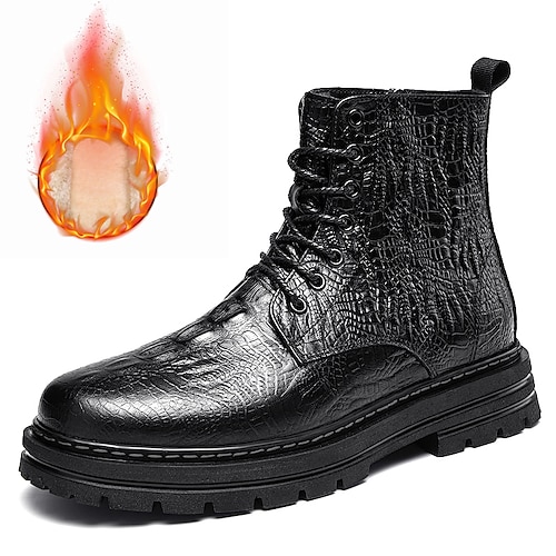 stivali da neve caldi da uomo foderati in pelliccia con chiusura a lacci, tomaia impermeabile e isolante, suola antiscivolo, calzature invernali per esterni adatte al freddo e all'abbigliamento casual
