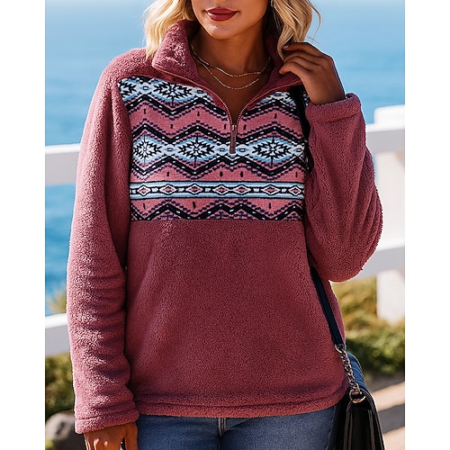 Per donna Felpa in pile polare Felpa invernale Manica Lunga Top Athleisure Blocco di colori Antivento Caldo All'aperto Viaggio Sportivo abbigliamento sportivo Abbigliamento sportivo Rosso Cachi Grigio