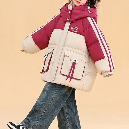 Bambini Ragazze Giacca in piuma Giacca Imbottita Lettera Sport Tasca Tenere al caldo Antivento All'aperto Cappotto Capispalla Dai 4 anni in su Inverno Nero Giallo Rosa