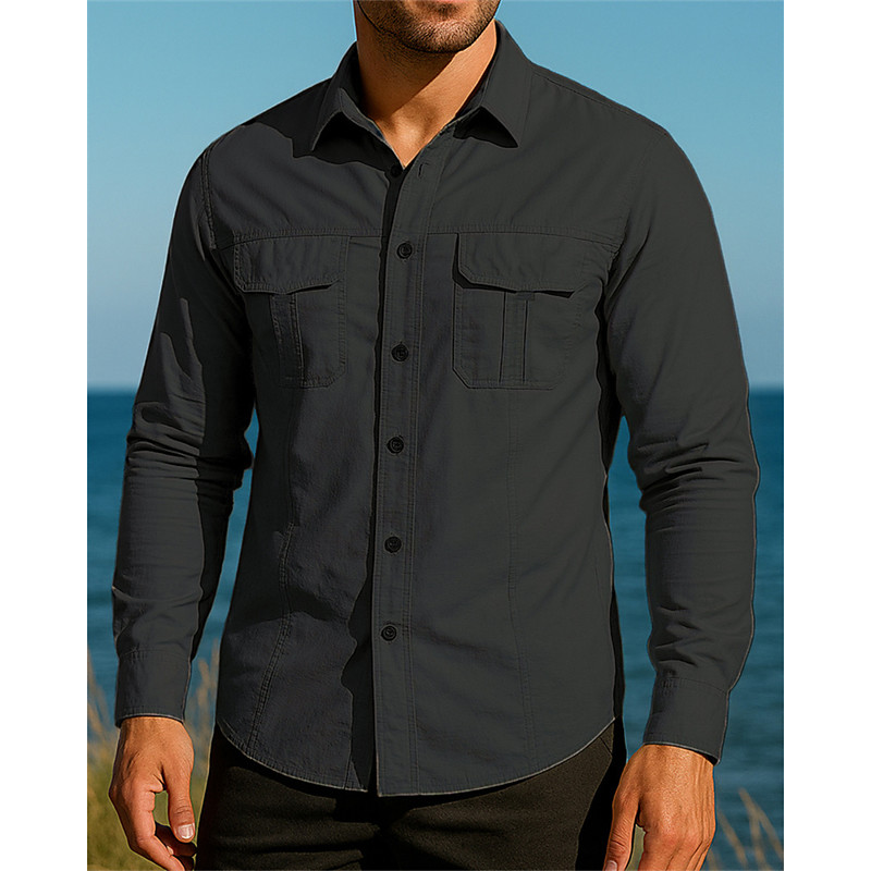 Men's Hiking Shirt Military Shirt Waterproof Shirt Long Sleeve Turndown Shirt Top Outdoor Breathable Nylon Black Army Green Khaki Hunting Fishing Camping / Hiking / Caving