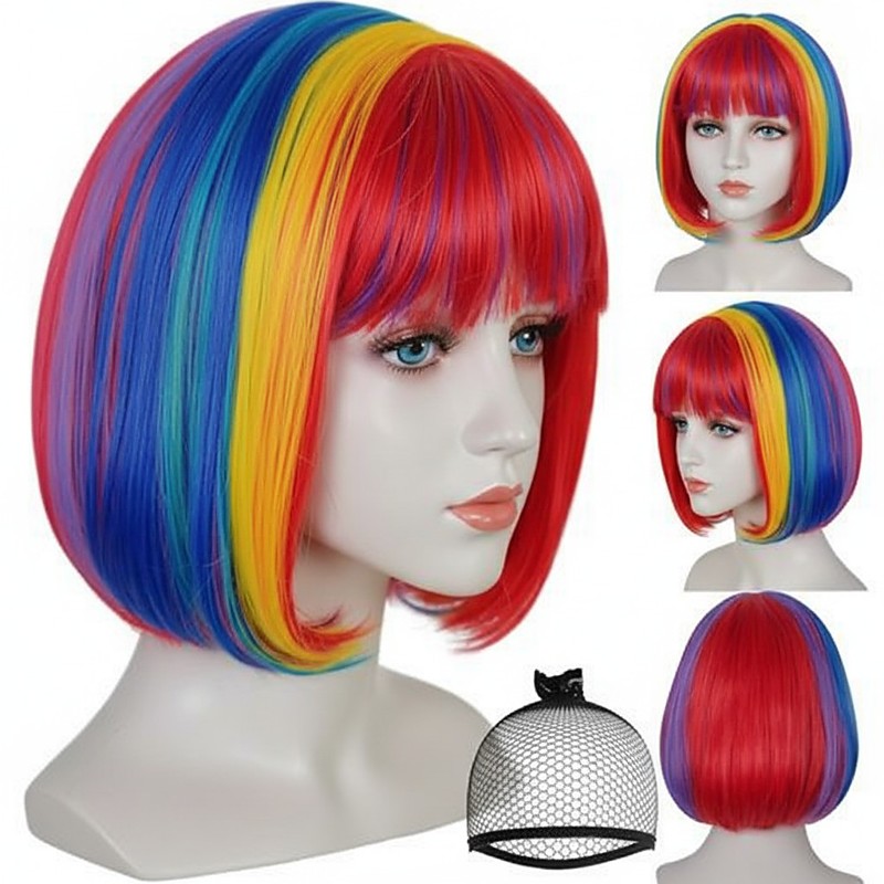 Carnival Wig 2026 Red Blue Purple Straight Bob Short Synthetic Festival Wig Mardi Gras Parade Cosplay Costume Hair for Women