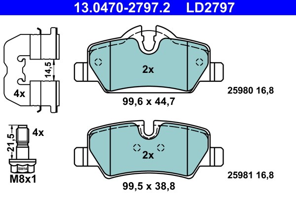 Jarrupalasarja, levyjarru, Taka-akseli Ate 13.0470-2797.2 - mini mini, cabriolet - OE 34 21 6 861 641, 34 21 6 864 488, 34 21 6 871 299