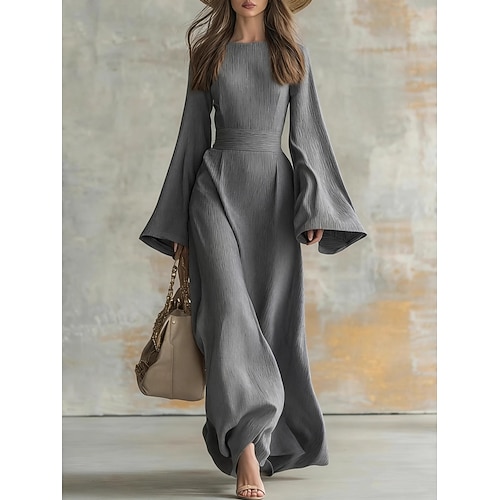 Per donna Abito Midi Abiti ispirati al lino Finto cotone e lino Vestito a caftano Abito Bianco Essenziale Casual Quotidiano All'aperto Vacanza Vestibilità comoda Colore Puro Manica Lunga Girocollo