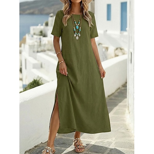 abito lungo da donna 100% cotone prendisole abito caftano abito bianco basic casual quotidiano esterno vestibilità ampia tinta unita mezza manica girocollo verde militare nero bianco vino estate primavera autunno