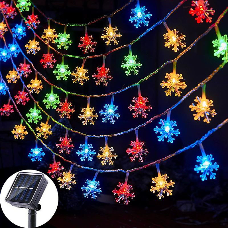 Solar Snowflake String Lights 100/200LEDs Outdoor Waterproof Garland Lights Garden Fairy Lights New Year Wedding Party Holidays 8 Modes Lighting Camping Decorative Tree Lights