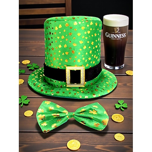 cappello da folletto verde per il giorno di San Patrizio da uomo set di papillon – scintillanti trifogli dorati, perfetti per le feste e gli abiti da festa