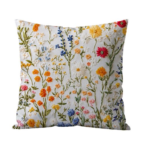 Fodera per cuscino floreale, federa decorativa con stampa piatta 2D e ricamo finto, tessuto in poliestere morbido per divano, camera da letto, soggiorno, arredamento per la casa