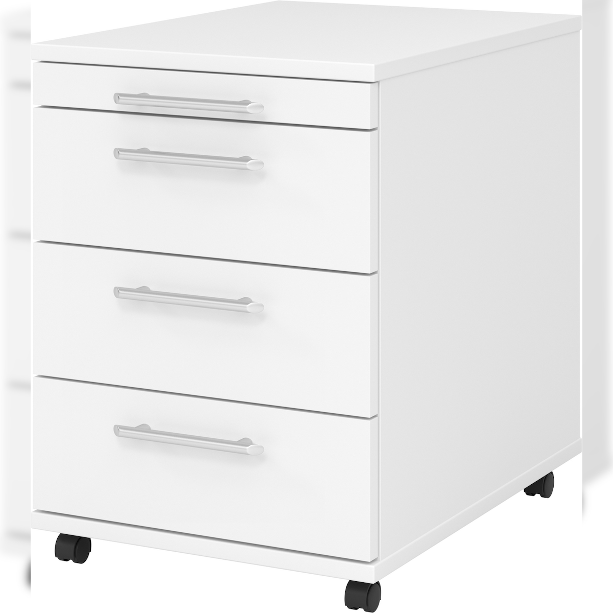 bümö basic Rollcontainer mit Schubladen, Container aus Holz in weiß - Rollwagen für's Büro als Schreibtisch Unterschrank, Bürocontainer od.