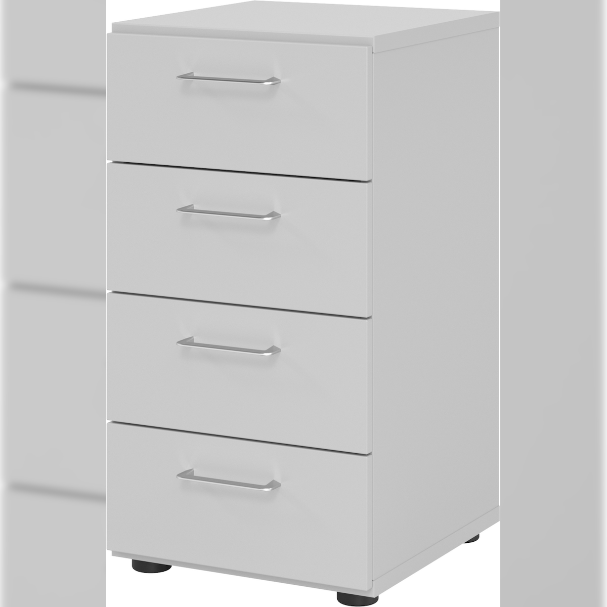 bümö smart Schubladenschrank, Büroschrank in grau mit 4 Schüben - Bürocontainer aus Holz, Container mit Metallgriffen & Soft-Stop Schubladen