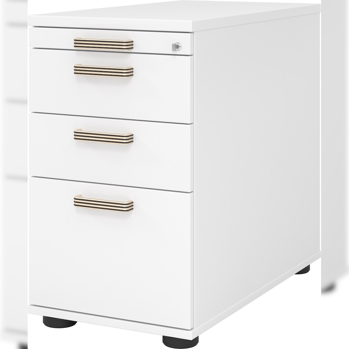 bümö Schreibtisch Schrank Büro mit Hängeregister für Hängeordner, Schubladenschrank Holz in weiß, Container mit Schubladen & Hängeregistratur -