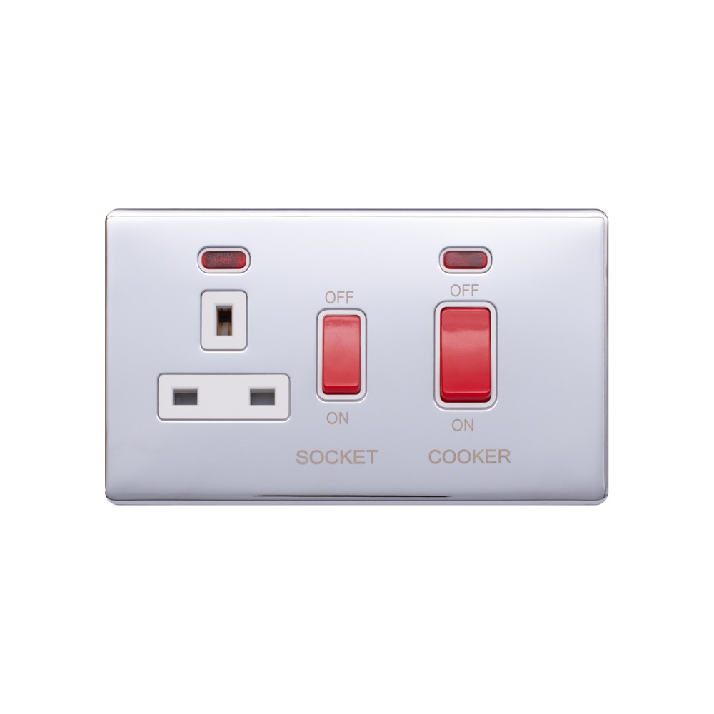 Lieber Polished Chrome 45A Cooker Control Unit & Neon-White Insert Screwless - Size: 146mm x 86mm x 3.1 mm