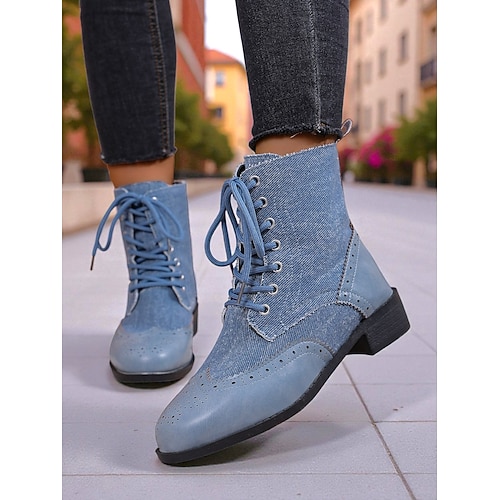 Hellblaue Oxford-Schuhe mit Schnürung und dickem Absatz für Damen im Brogue-Stil – Plateauschuhe im Vintage-Stil für die Freizeit und das Büro